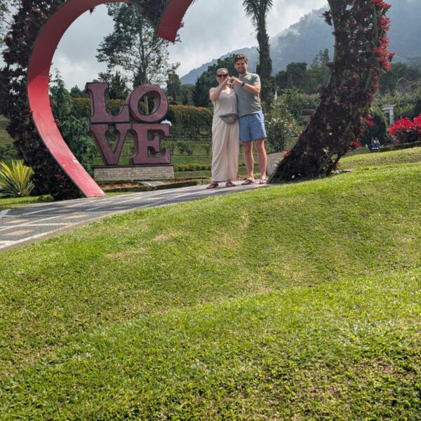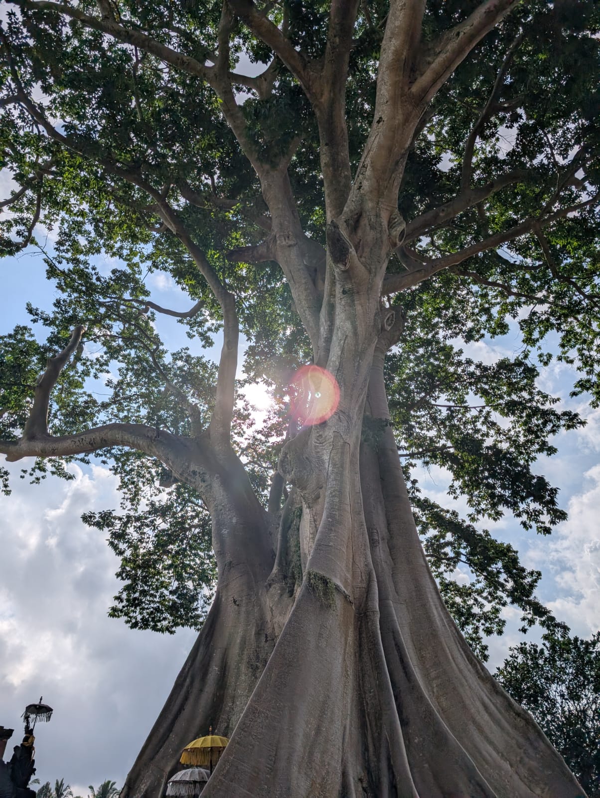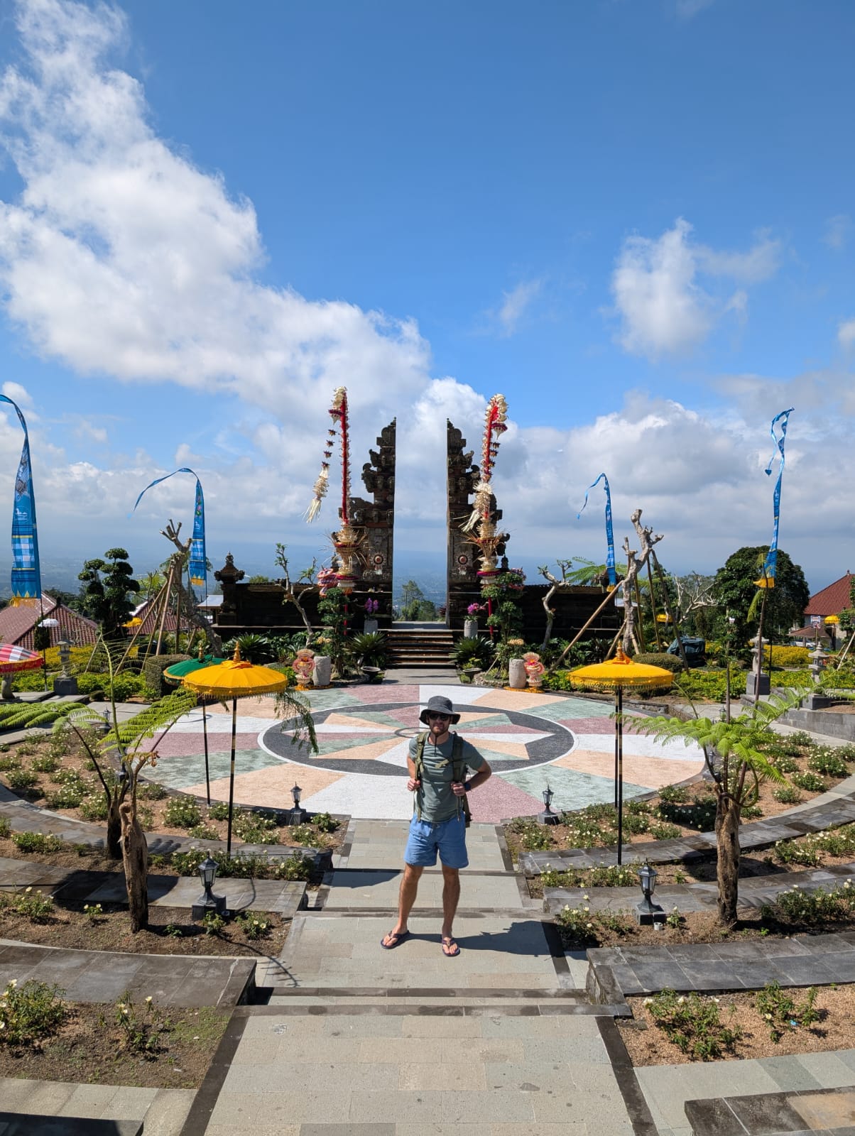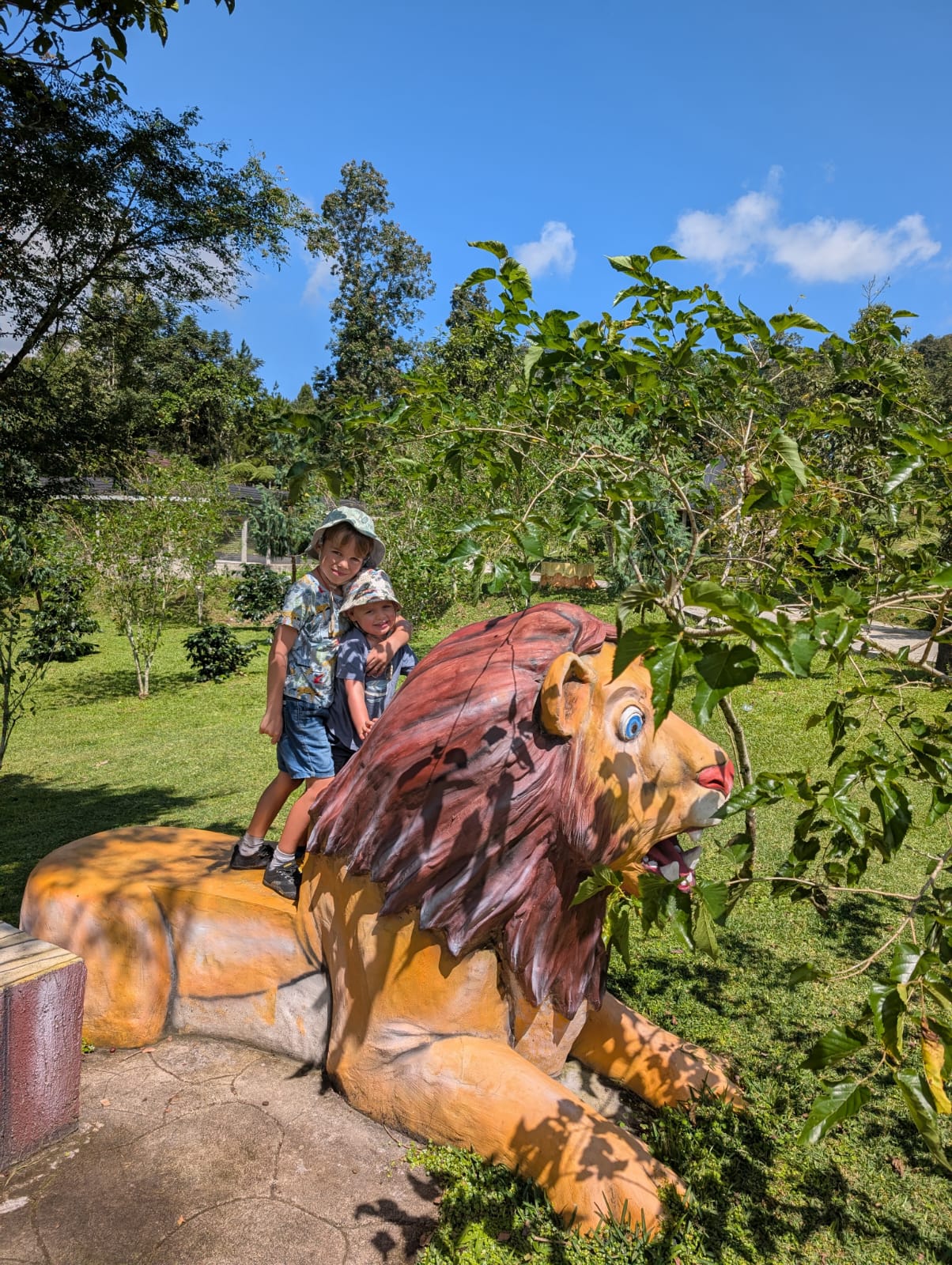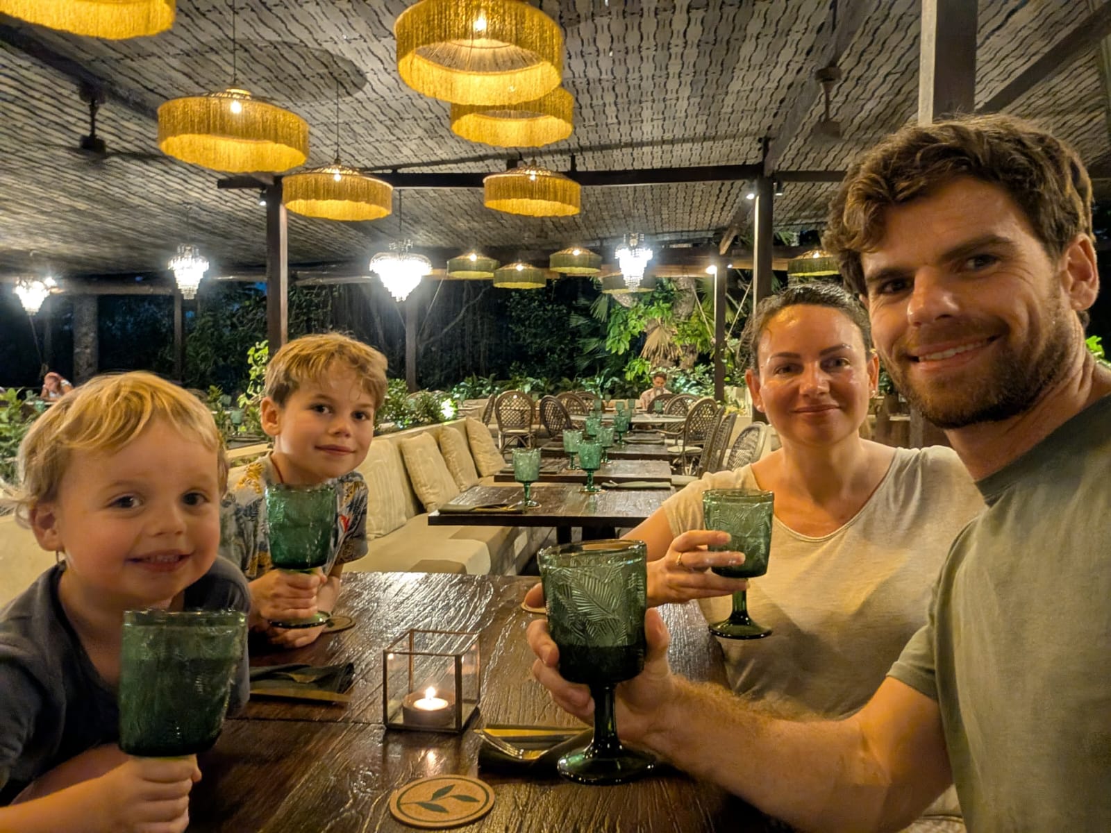 Pour cette premiĂšre journĂ©e d’excursions, nous avons dĂ©cidĂ© de visiter le Temple Tamblingan sur les conseils de notre chauffeur Budi. En chemin, nous avons vu des singes et Budi nous a proposĂ© de nous arrĂȘter pour les voir de plus prĂšs. Il a gentiment achetĂ© des cacahuĂštes sur le petit stand en face. Il y’avait beaucoup de bĂ©bĂ©s et les singes venaient Ă nous et prenaient dĂ©licatement (et rapidement) les cacahuĂštes de nos mains. Il y en a mĂȘme un qui a essayĂ© de me prendre le sac! Super moment pour les petits et les grands đ Nous sommes ensuite arrivĂ©s au Temple Tamblingan, au bord du lac. Nous Ă©tions seuls lĂ bas et c’Ă©tait trĂšs joli et serein. AprĂšs cela, nous sommes descendus plus au sud, visiter The Blooms Garden. LĂ encore, nous Ă©tions presque seuls et il faisait un temps idĂ©al. Le jardin Ă©tait magnifique (fleurs, sculptures, statues, poissons..) et nous avons passĂ© plusieurs heures Ă l’explorer. Nous avons mĂȘme Ă©tĂ© pris en photos par des touristes indonĂ©siens, probablement surpris de voir des petits blonds aux yeux bleus đ En route pour Ubud, nous nous sommes arrĂȘtĂ©s veoir the Bayan Ancient Tree, un arbre magnifique de 700 ans! Le soir nous avons dinĂ© Ă Ubud dans le meilleur restaurant vegan que nous avons jamais testĂ©. Tout Ă©tait exceptionnel: le cadre, les pizzas, burger, salade, filet de champignon grillĂ©, smoothies et les glaces (pistache Yummy!).Â