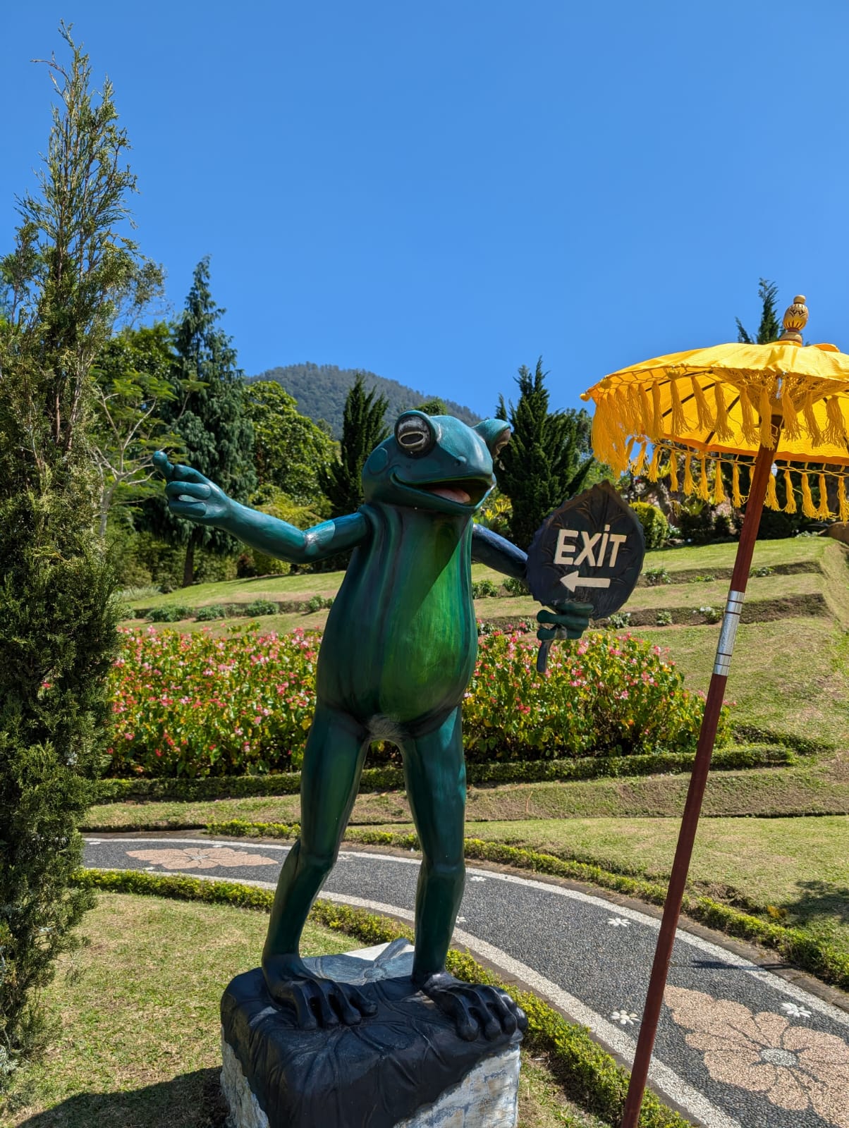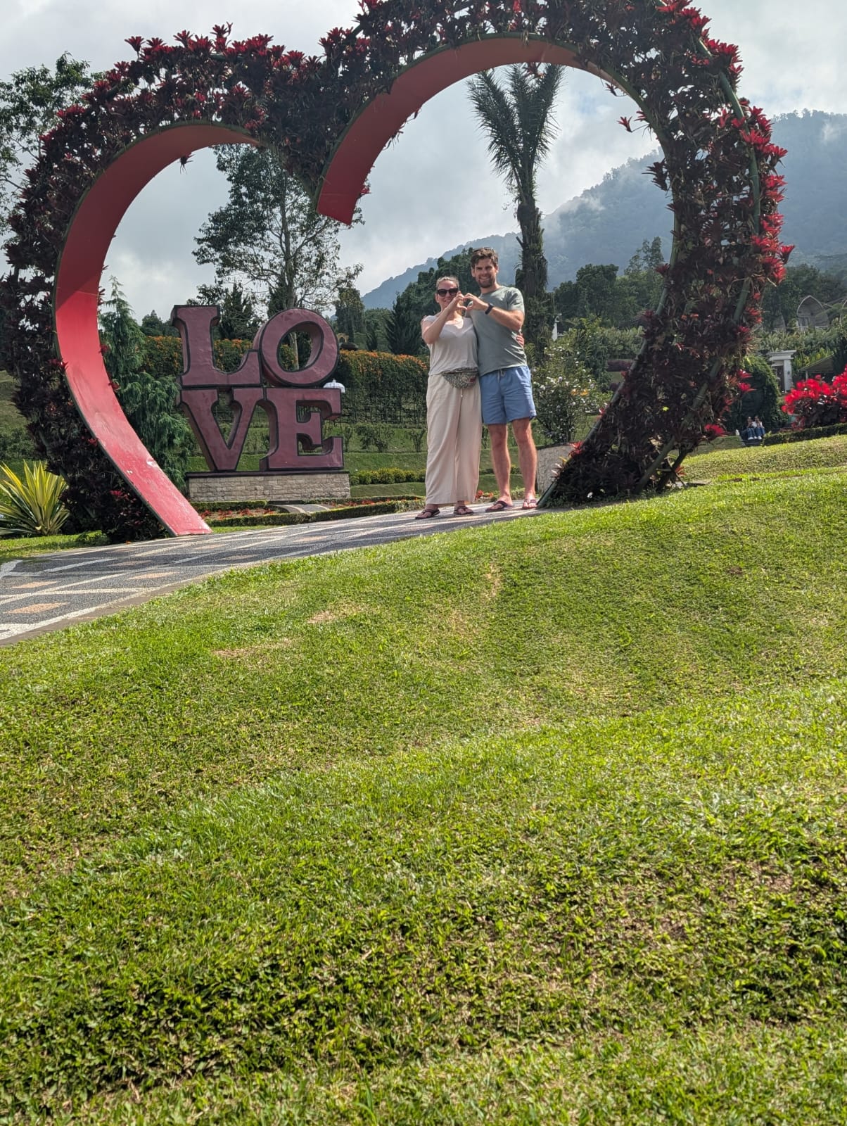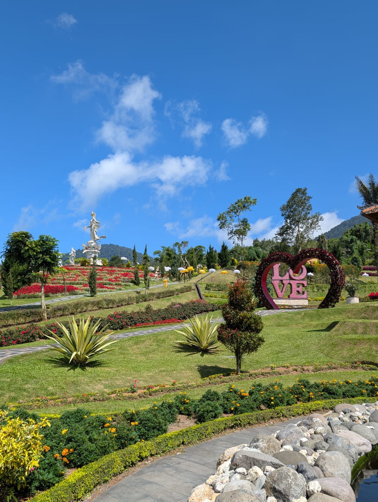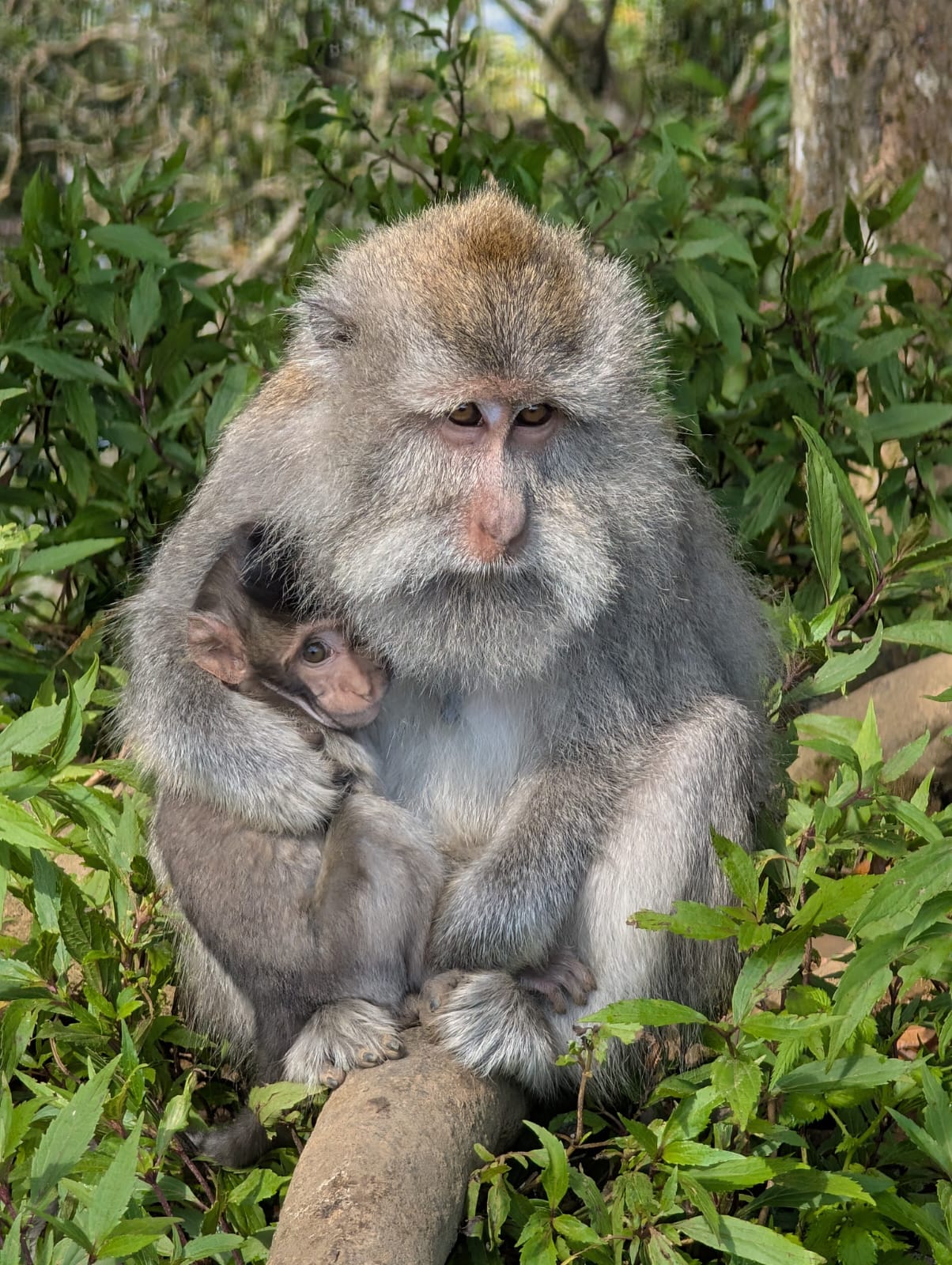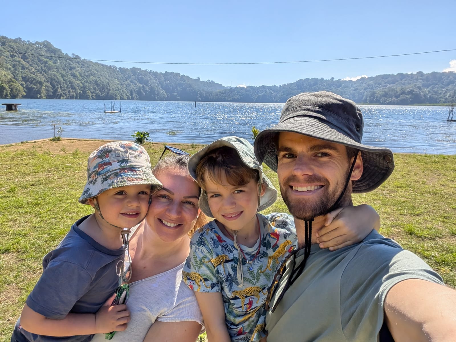 Pour cette premiĂšre journĂ©e d’excursions, nous avons dĂ©cidĂ© de visiter le Temple Tamblingan sur les conseils de notre chauffeur Budi. En chemin, nous avons vu des singes et Budi nous a proposĂ© de nous arrĂȘter pour les voir de plus prĂšs. Il a gentiment achetĂ© des cacahuĂštes sur le petit stand en face. Il y’avait beaucoup de bĂ©bĂ©s et les singes venaient Ă nous et prenaient dĂ©licatement (et rapidement) les cacahuĂštes de nos mains. Il y en a mĂȘme un qui a essayĂ© de me prendre le sac! Super moment pour les petits et les grands đ Nous sommes ensuite arrivĂ©s au Temple Tamblingan, au bord du lac. Nous Ă©tions seuls lĂ bas et c’Ă©tait trĂšs joli et serein. AprĂšs cela, nous sommes descendus plus au sud, visiter The Blooms Garden. LĂ encore, nous Ă©tions presque seuls et il faisait un temps idĂ©al. Le jardin Ă©tait magnifique (fleurs, sculptures, statues, poissons..) et nous avons passĂ© plusieurs heures Ă l’explorer. Nous avons mĂȘme Ă©tĂ© pris en photos par des touristes indonĂ©siens, probablement surpris de voir des petits blonds aux yeux bleus đ En route pour Ubud, nous nous sommes arrĂȘtĂ©s veoir the Bayan Ancient Tree, un arbre magnifique de 700 ans! Le soir nous avons dinĂ© Ă Ubud dans le meilleur restaurant vegan que nous avons jamais testĂ©. Tout Ă©tait exceptionnel: le cadre, les pizzas, burger, salade, filet de champignon grillĂ©, smoothies et les glaces (pistache Yummy!).Â