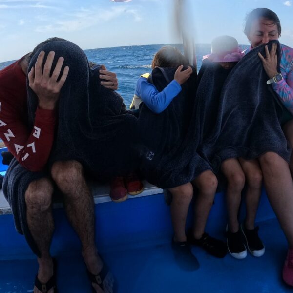 Lundi 18 Août, journée anniversaire pour Alistair (qui avait passé les 3 jours précédents couchés pour la plupart du temps). Sortie en bateau pour voir les dauphins et encore une journée inoubliable avec des centaines de dauphins à quelques mètres du bateau (Mika nous avait dit qu’il était un aimant à animaux et il n’avait pas menti!). Sous l’eau, un spectacle à couper le souffle et des chants envoûtants. Les enfants n’ont pas nagé avec eux mais les ont vu sauter dans les airs et nager tout autour du bateau.