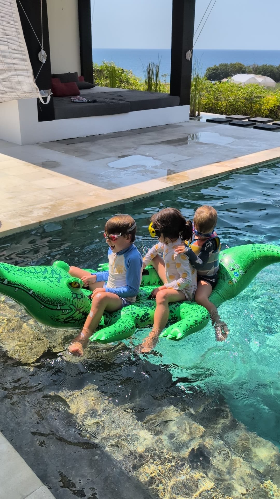 Mardi 12 Août, retrouvailles avec Marie, Mika et Jade pour notre plus grand bonheur. Première journée en douceur à leur sublime villa, piscine de rêve, vue sur l’océan, bouée crocodile, jeux, repas fait maison par Ayu. Et c’était comme si on ne s’était jamais quittés.