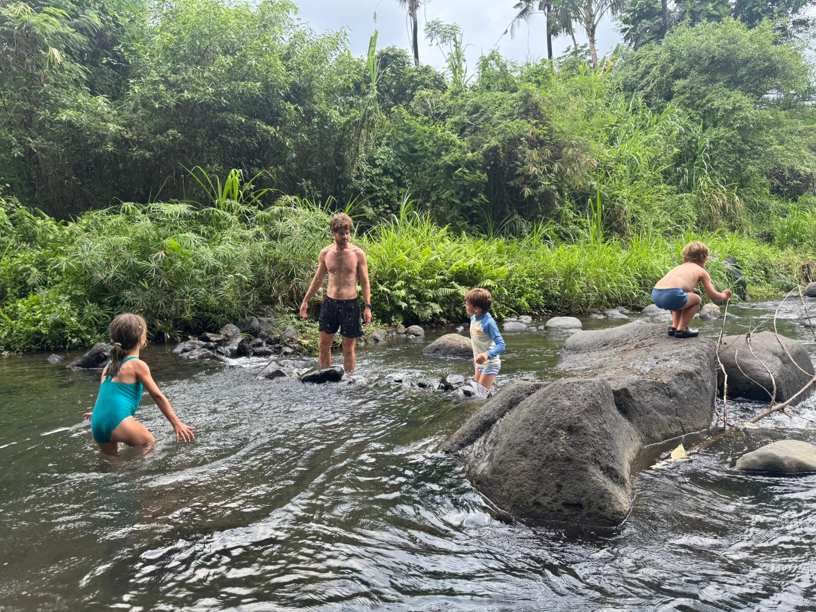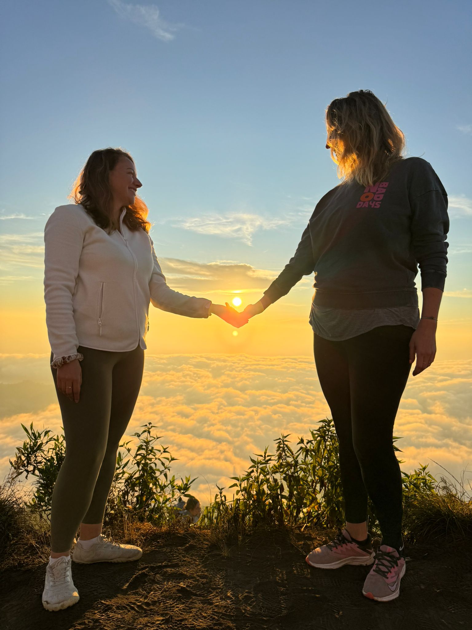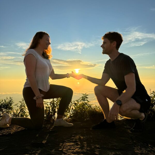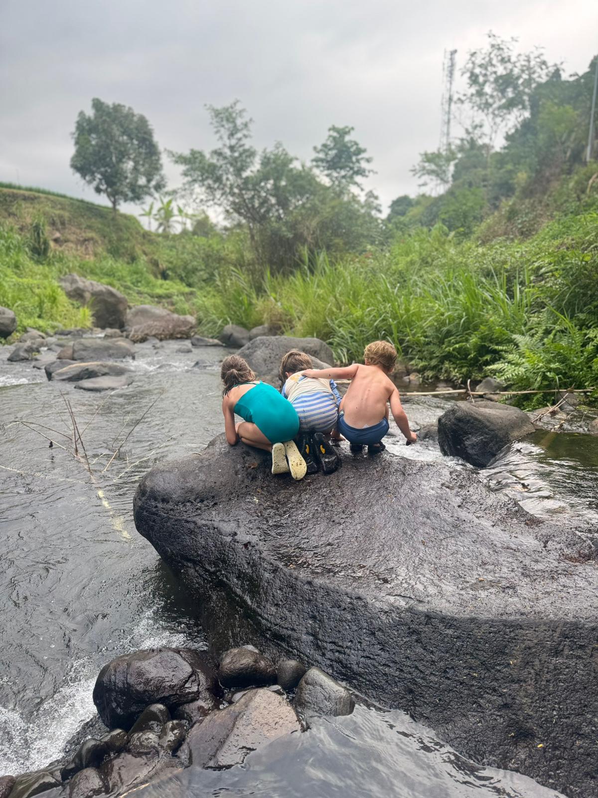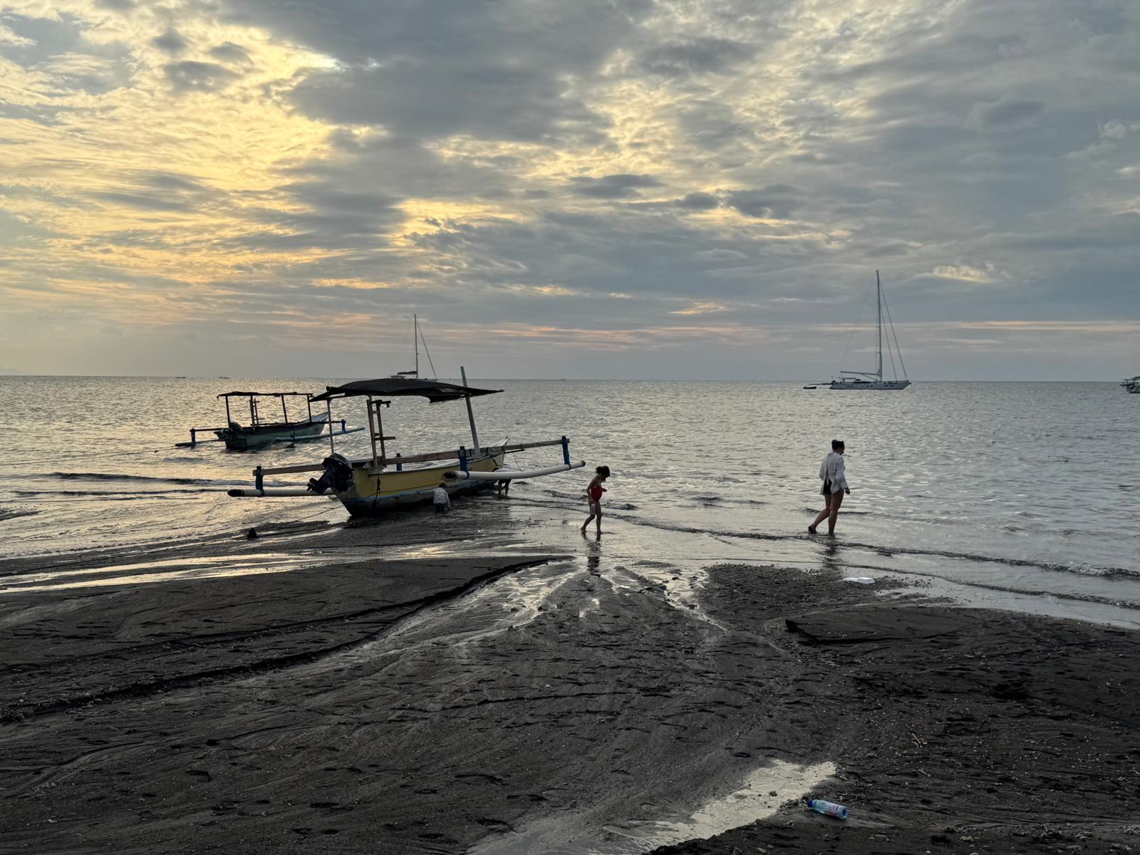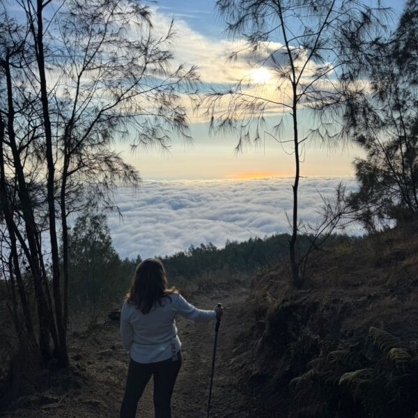 Lundi 25 Août, randonnée sur le Volcan Mount Batur tous ensemble. Départ de la maison, minuit et demi pour Marie, Mika et Jade, 1h30 pour nous. 2h de trajet, arrivée au pied du volcan à 3h30 du matin et il faisait froid (beaucoup beaucoup plus froid que dans le nord de Bali). 20 minutes de Jeep suivies d’1h30 d’ascension. J’avais convaincu Alistair que non, les tongs pour monter le volcan ce n’était pas le meilleur choix, et heureusement! Les enfants ont été super. On montait avec les lampes torches et on ne voyait presque rien. Arrivés au sommet, vue imprenable, lever du soleil magnifique, photoshoot avec le guide. Un de nos meilleurs moments à Bali. Avant de rentrer, nous nous sommes arrêtés aux sources chaudes pour un moment de détente très appréciable.