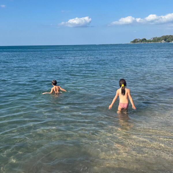 De retour sur la terre ferme, direction un centre de conservation des tortues où il y avait des petites tortues de quelques semaines trop mignonnes. Puis jus de fruits et plage pour les enfants, leur moment préféré de la journée. Alistair, lui était allongé dans la voiture tout l’après-midi le pauvre.