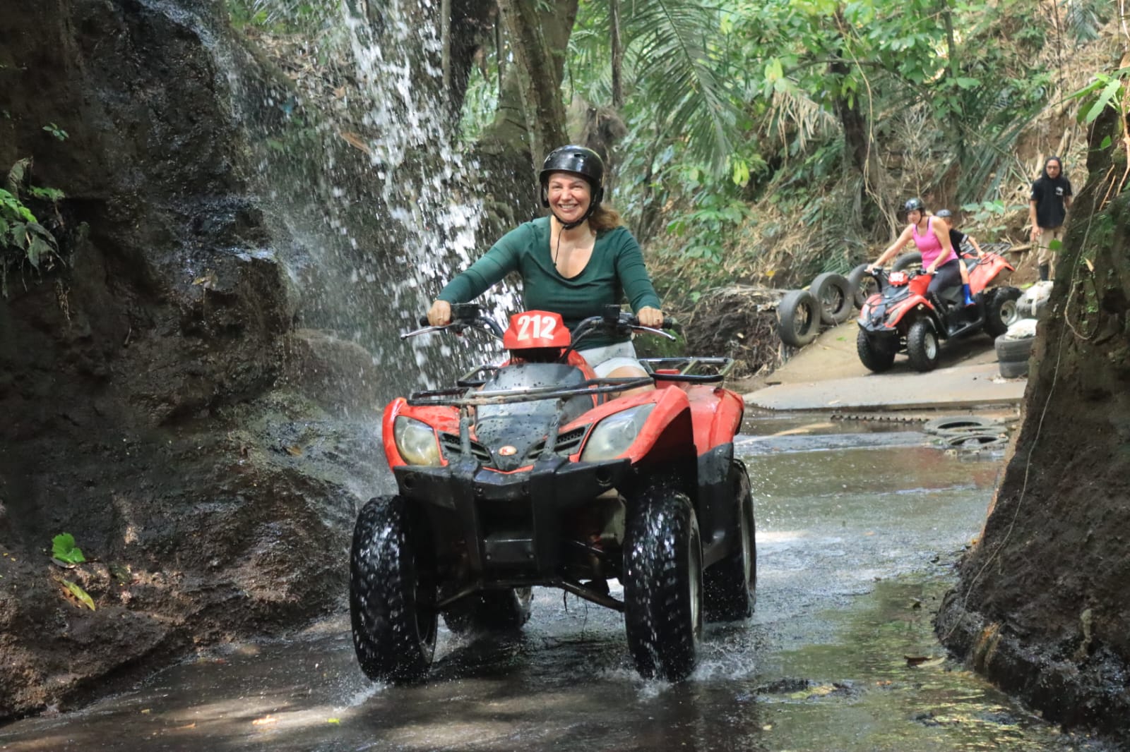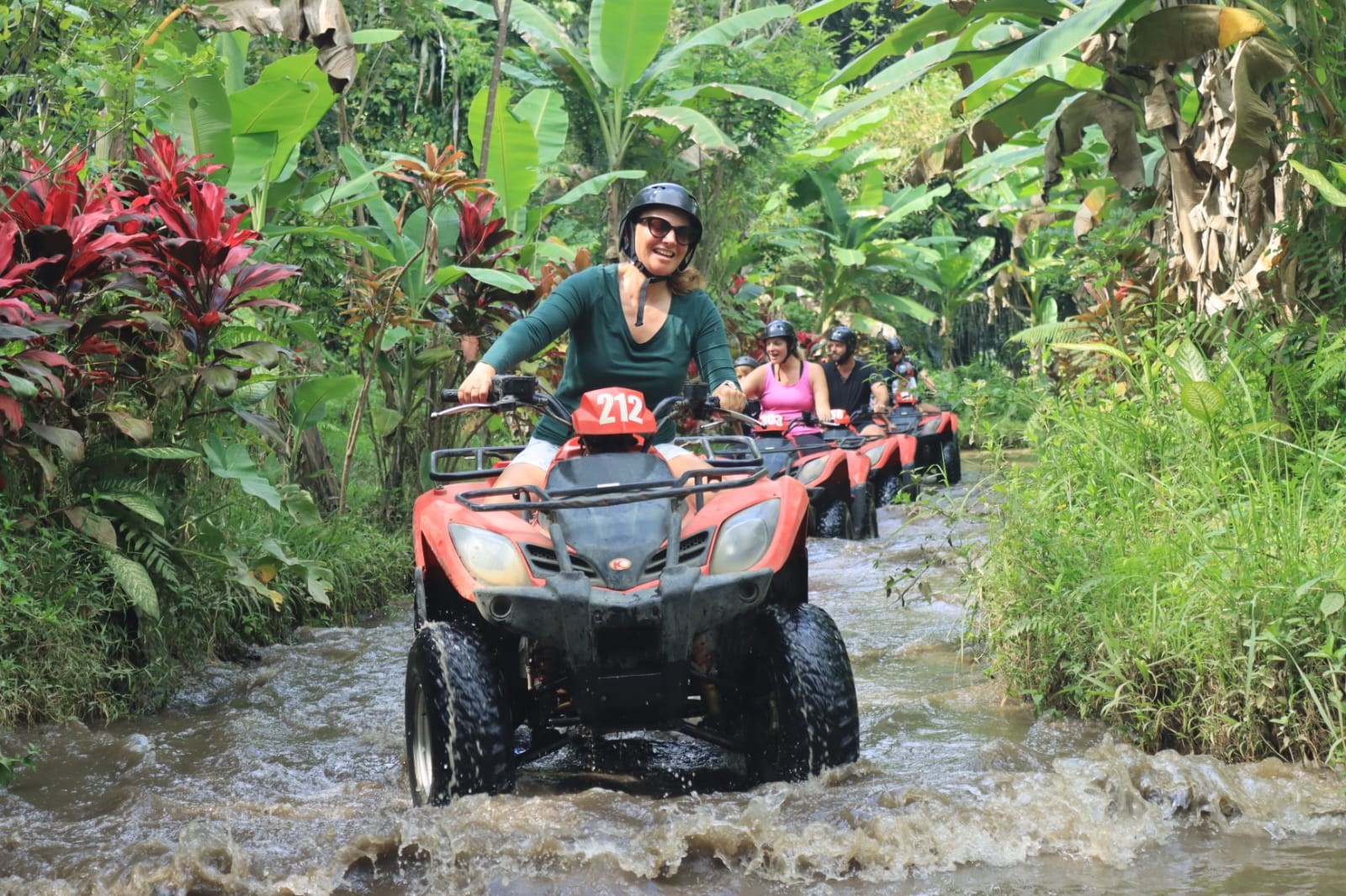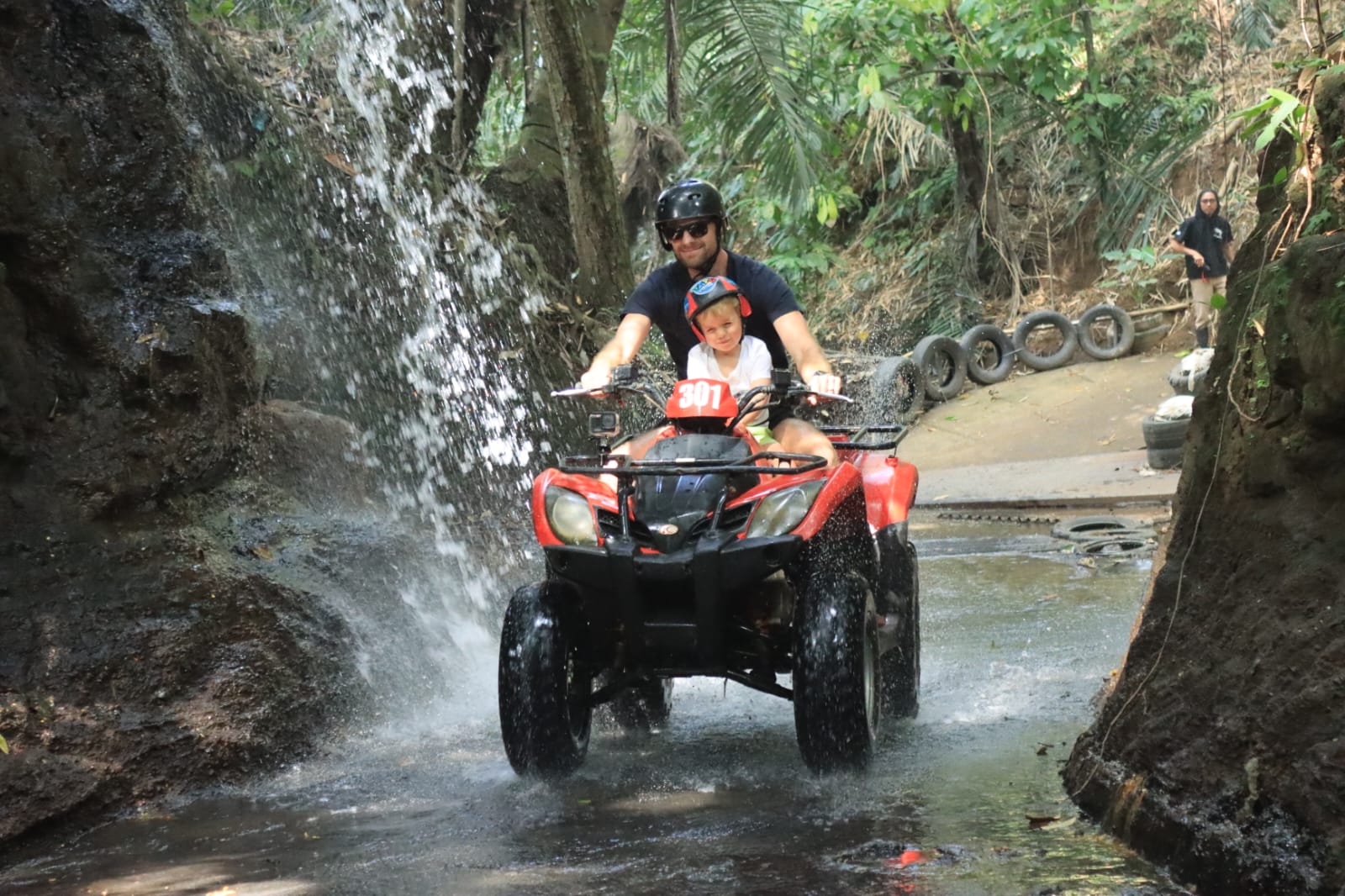 Vendredi 22 Août, journée Quad à Ubud. Nous avons eu beaucoup de difficultés à trouver un prestataire qui acceptait Lilio et notre chauffeur Budi a du nous aider. Doutant de mes capacités de pilote, j’ai quand même confié les enfants à des adultes (presque) responsables: Léonard avec Marie et Lilio avec Alistair. Passage dans l’eau, dans des tunnels, dans des rizières, sur des petits ponts, c’était super! Les enfants ont adoré et nous aussi 🙂